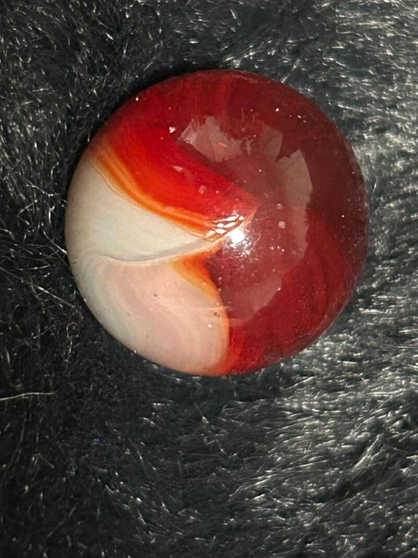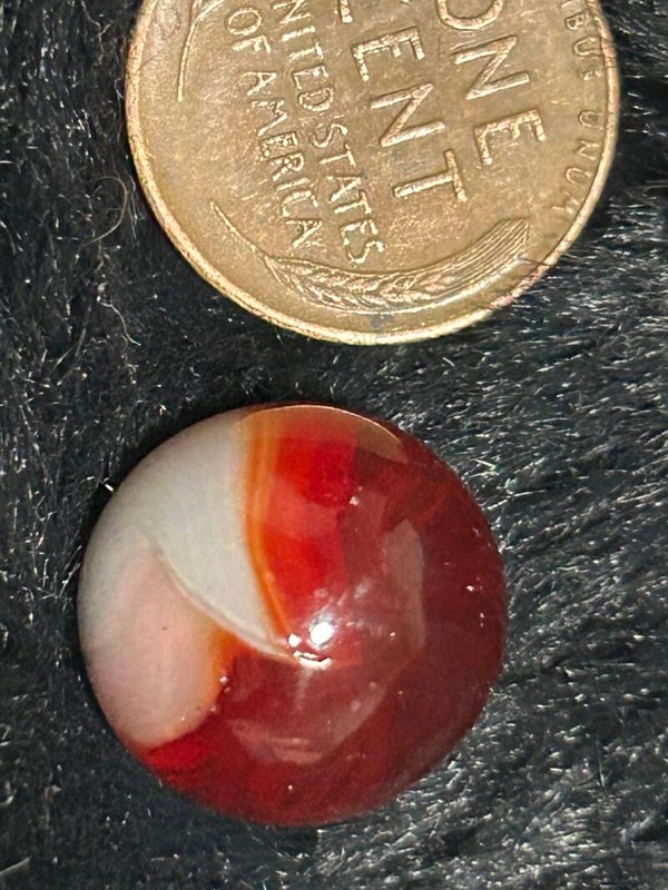 17mm cherry red with streak of yellow white patch marble beautiful and unique design trasnslucent base 9.8 mint