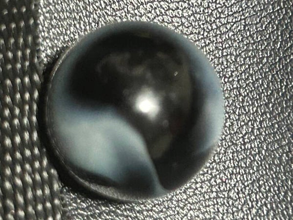 Beautiful Unique White on black base with 9 and tail, 9.8 mint 16mm gorgeous marble. white cloudy look on the black base.
